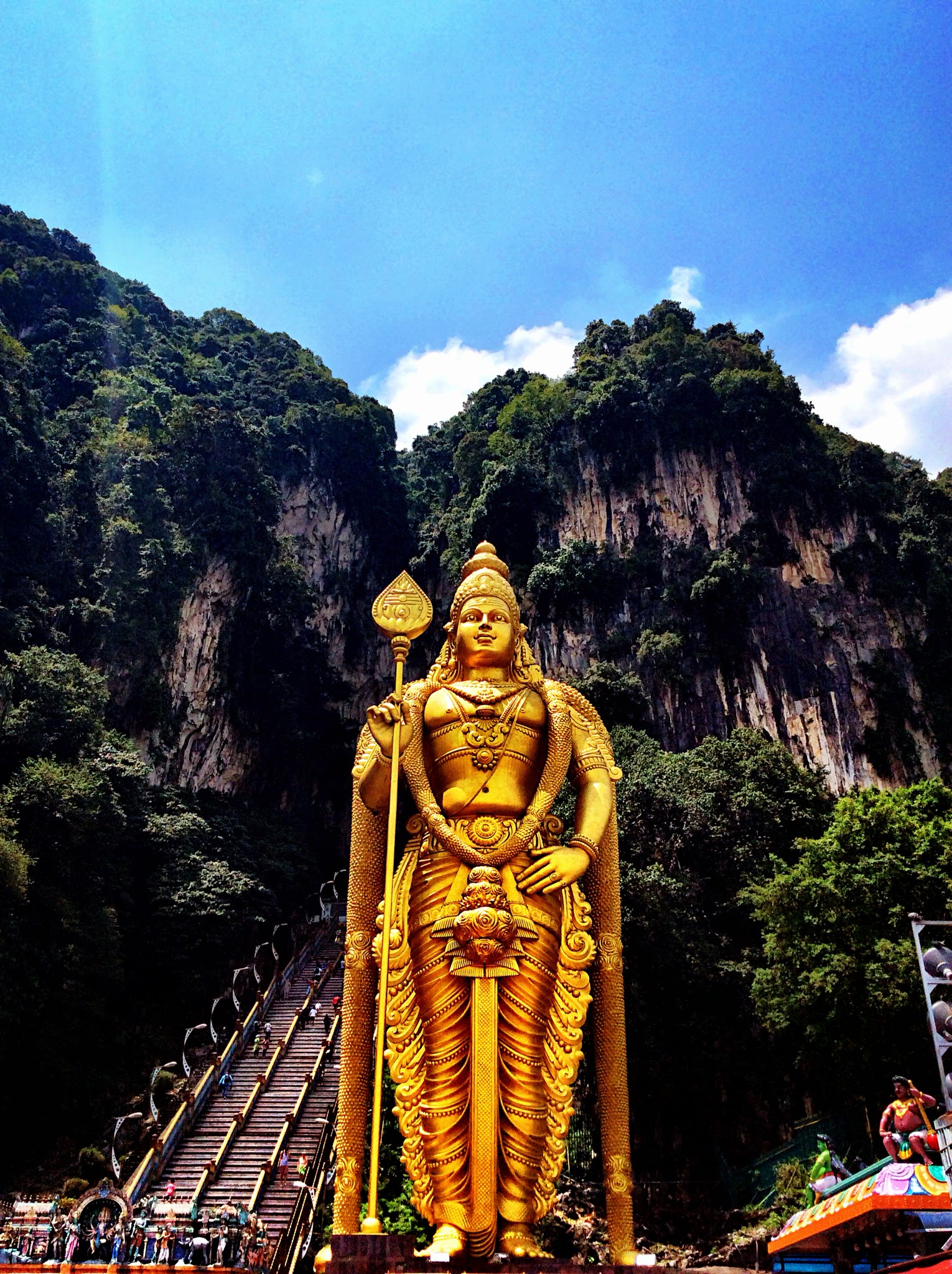 I dropped my bag in a locker at the train station this morning, after checking out of my hotel. I took the monorail to KL's central station, and then took the regular north to the Batu Caves, a large cavern temple full of bats, birds, monkeys, and statues.